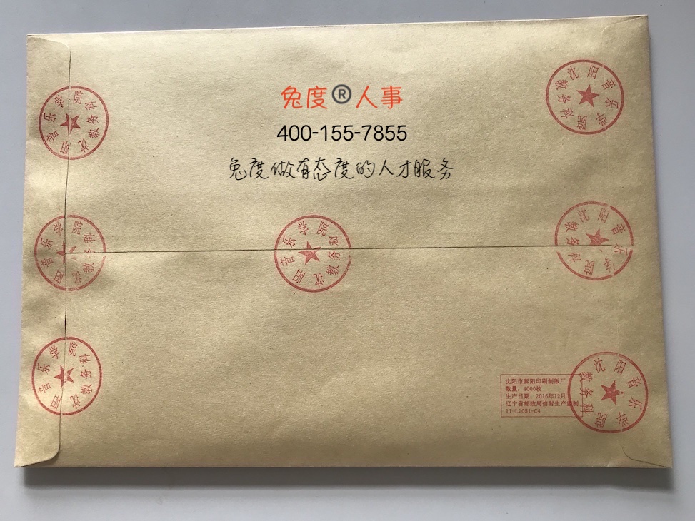 沈陽音樂學(xué)院出國留學(xué)材料密封后加蓋騎縫章?