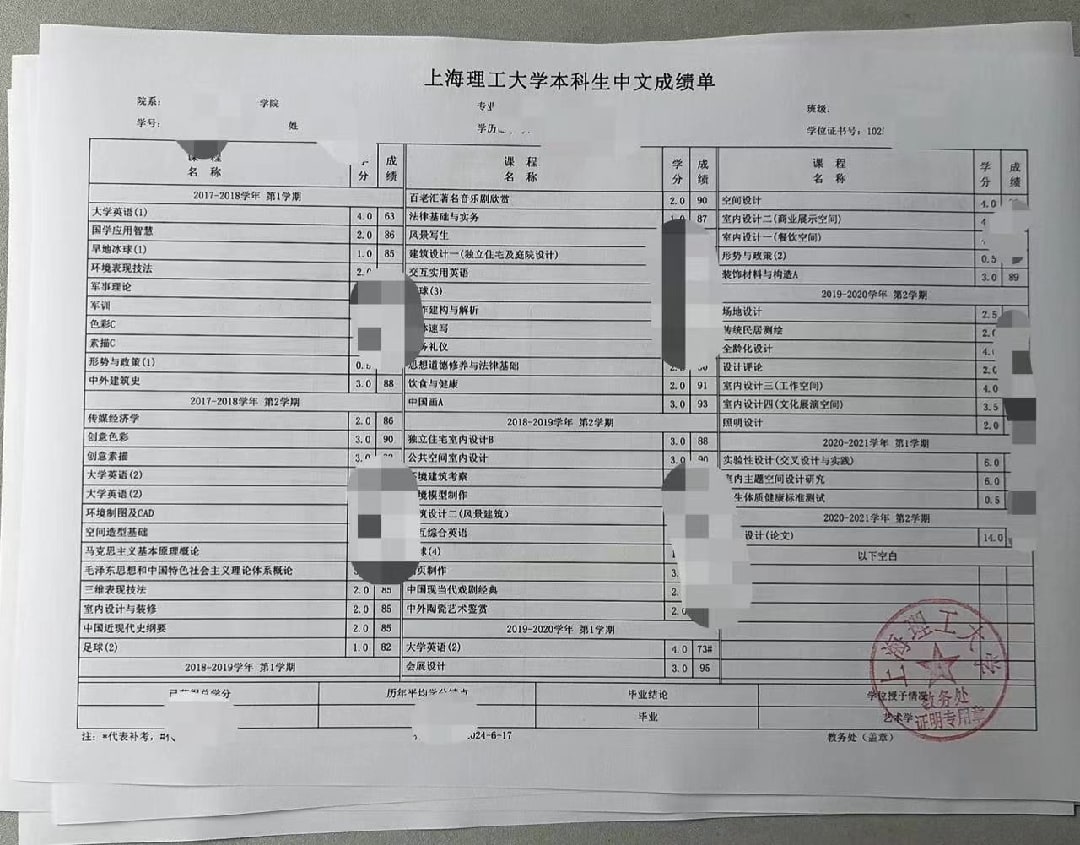 上海理工大學(xué)學(xué)業(yè)成績(jī)單案例