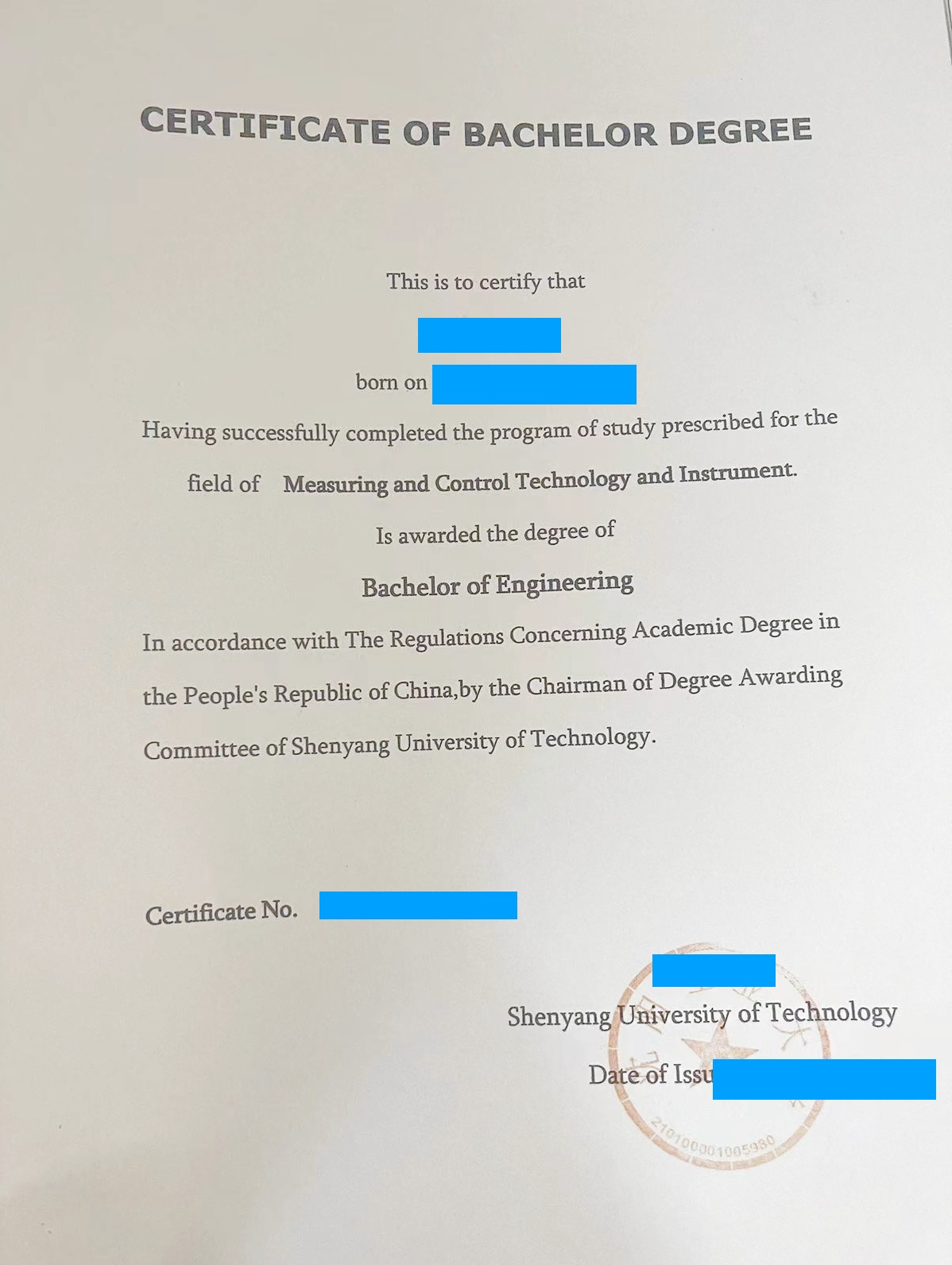 沈陽工業(yè)大學(xué)英文畢業(yè)證明、學(xué)位證明及成績單辦理